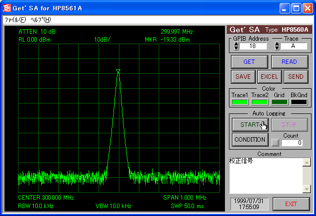 スペクトラムアナライザをGPIBで制御し、データを集録、グラフ描画、ファイル保存、再生します。