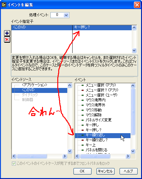イベントが「キー押し」だと意味不明のイベントになり、